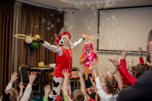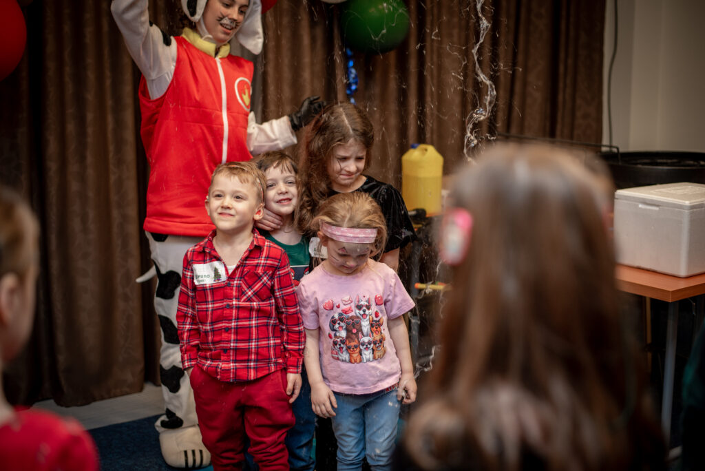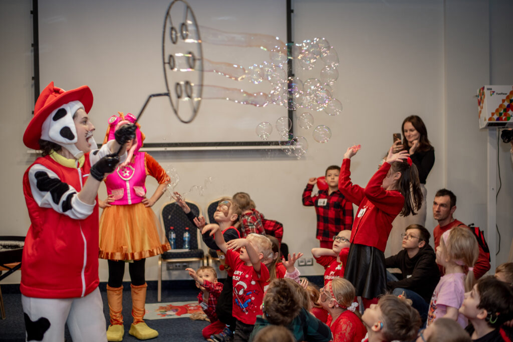 Towarzyszyła mu wesoła ekipa pomocników, a wśród nich – znane i uwielbiane pieski z Psiego Patrolu, wywołując jeszcze więcej uśmiechów i zachwytu. Dzieci spędziły czas w atmosferze pełnej zabawy, śmiechu i magii, a ich radość była najlepszym dowodem na sukces tego wyjątkowego dnia.